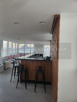 Flat totalmente mobiliado, localizado na cobertura, oferecendo uma vista livre e deslumbrante do mar.
