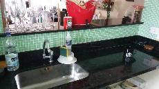Cozinha americana. Bancadas de granito ( preto ) na cozinha e banheiro, ambas com 2,06 metros. de comprimento.
