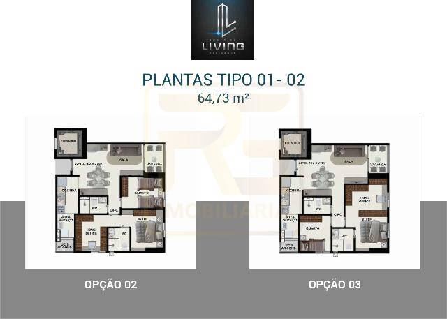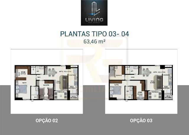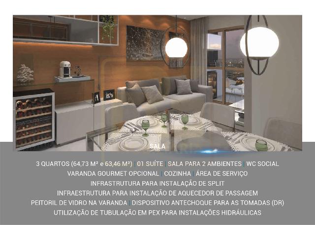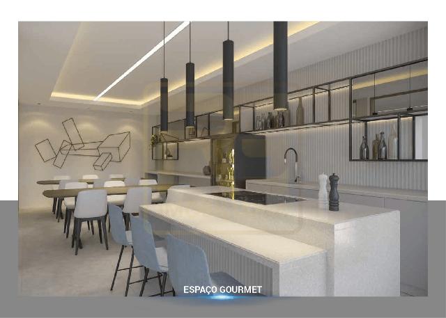 1 suíte, sala para 2 ambientes, varanda gourmet opcional, cozinha, área de serviço, infraestrutura para Split e aquecedor, peitoril de vidro e instalações modernas.