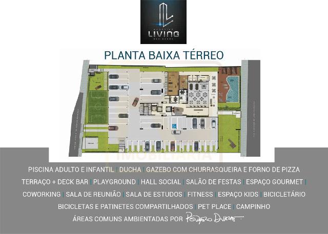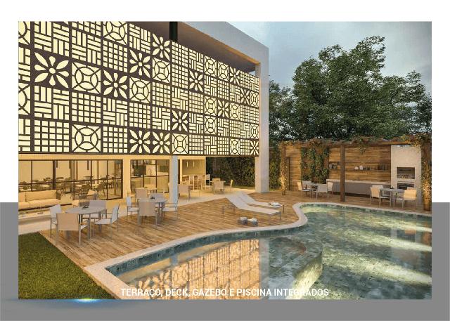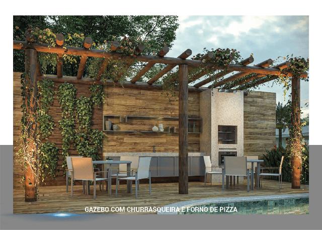 Piscinas adulto e infantil, gazebo com churrasqueira e forno de pizza, terraço com deck bar, salão de festas, espaço gourmet, academia, coworking, sala de estudos, brinquedoteca, pet place, campinho, playground e bicicletas/patinetes compartilhados.