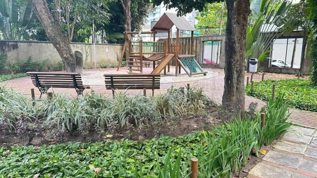 Apartamento nascente, andar alto, com 138 m², varanda preservada e sala para 2 ambientes. Conta com 2 WC sociais (sendo 1 original e 1 suíte canadense convertida), escritório, 3 quartos incluindo suíte com closet além de copa/cozinha, área de serviço, dependência completa e 2 vagas livres e cobertas. Unidade refinada, em porcelanato e com todos os móveis fixos. Pronto para morar.