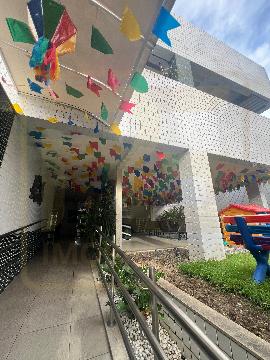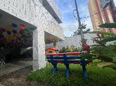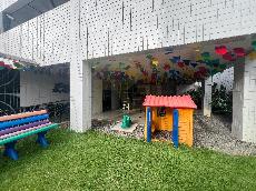 Playground, hall decorado e bicicletário;