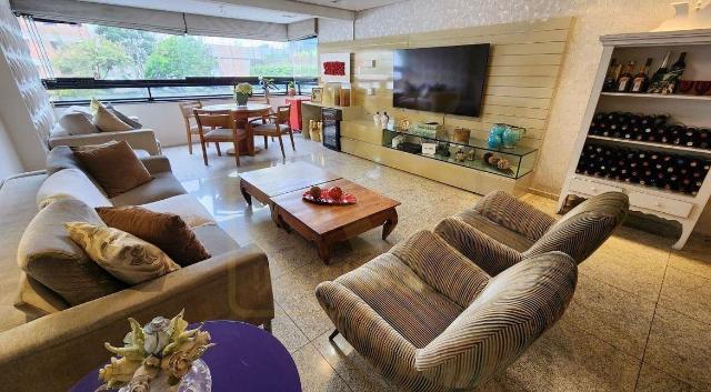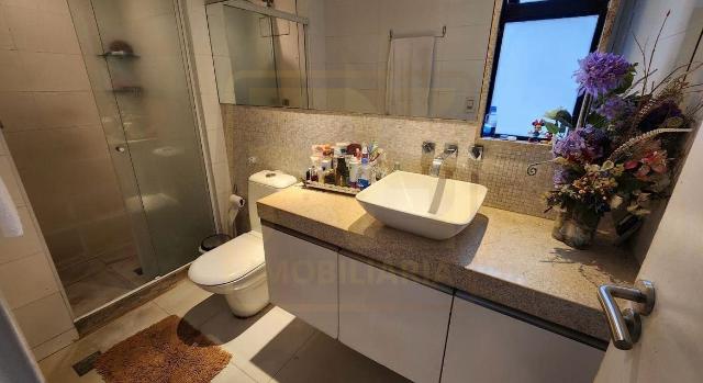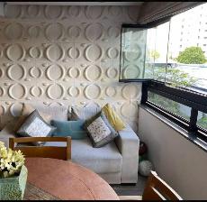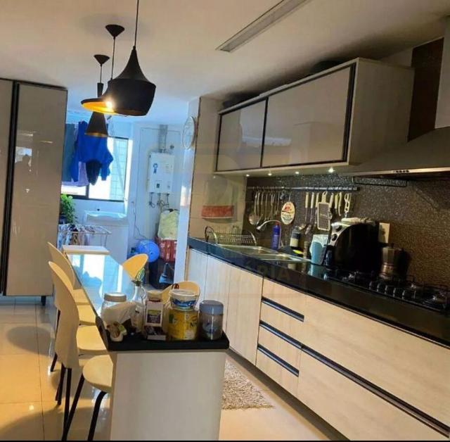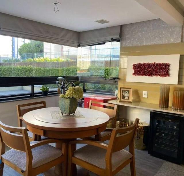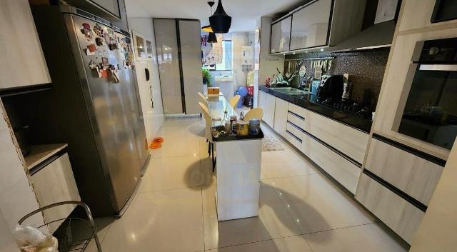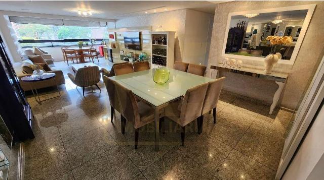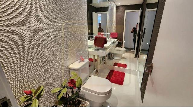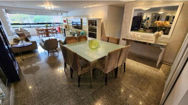 Um apartamento sofisticado de 153 m², com varanda integrada em cortina de vidro, sala ampla para dois ambientes, lavabo, três suítes incluindo uma suíte master com closet além de copa/cozinha, área de serviço, dependência completa e três vagas cobertas. O acabamento combina granito, porcelanato e móveis planejados de alto padrão, trazendo requinte a cada detalhe.