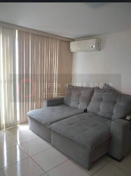 O imóvel possui 2 quartos, 2 banheiros, sala, cozinha, varanda, possui ar-condicionado, área de serviço, armários planejados na cozinha e nos quartos, churrasqueira e varanda.