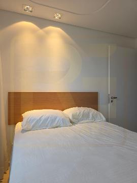 O imóvel conta com sala ampla, equipada com armário, TV, sofá-cama e mesa de jantar, além de quarto confortável com armários e cama box com espaço interno para armazenamento. A cozinha é planejada, com geladeira e fogão novos, e o banheiro possui box em blindex e armário. Dispõe ainda de 1 vaga de garagem coberta.