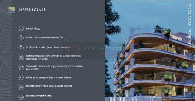. Portaria inteligente com controle de acesso eletrônico; . Sistema de câmeras de segurança com acesso remoto pelo celular; . Pontos para carregamento de carro elétrico; . Bicicletas compartilhadas; . Bicicletário; . Delivery coletivo com controle digital; . Market; . Vestiário de serviço (masculino e feminino); . Espaço oficina com ferramentas compartilhadas; . Torneiras econômicas com fechamento automático nas áreas comuns; . Espaço para armazenamento de lixo reciclável; . Tratamento de águas cinzas e aproveitamento da água da chuva para reúso nos vasos sanitários e fins não potáveis; . Medidor de água individual com leitura eletrônica; . Usina solar para geração de energia de uso comum; . Iluminação com lâmpadas de led e sensor de presença. . Bicicletas compartilhadas (4 elétricas e 6 praianas) . 3 pontos para carregamento de carro elétrico . Market e Delivey . Medidor de água individual com leitura eletrônica.