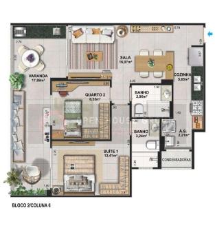 . Nicho nos boxes dos banheiros social e suíte; . Infraestrutura para ar condicionado tipo Split nas salas e quartos; . Opção de troca de piso (kit vendido separadamente).