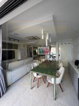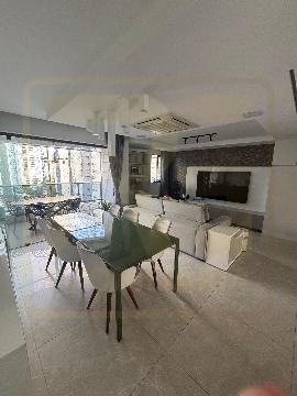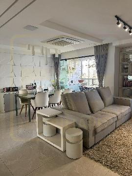 Apartamento nascente, finamente ambientado, com 114 m², sala ampliada para 3 ambientes integrada à varanda gourmet, 3 quartos (2 suítes), WC social, copa/cozinha, área de serviço, dependência completa e 2 vagas cobertas.
