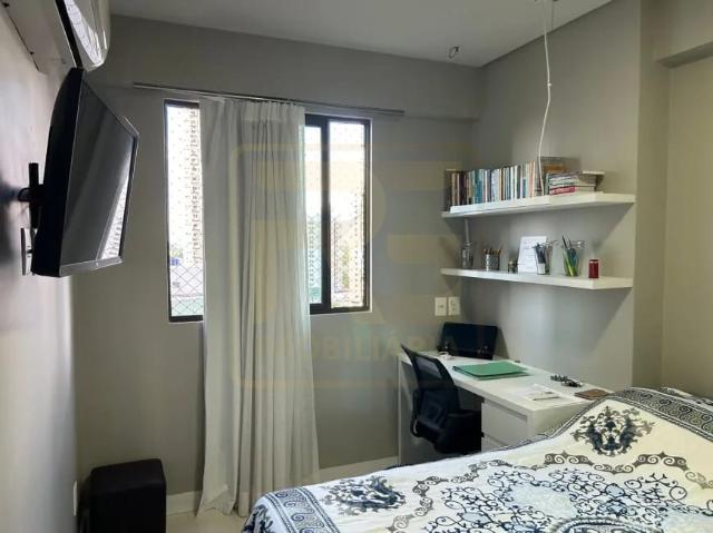Apartamento padrão Gabriel Bacelar com 113 m², posição nascente e varanda interligada à sala com cortina de vidro. Ambientes amplos e bem distribuídos, com sala para 2 ambientes, WC social, 4 quartos (sendo 2 suítes), copa/cozinha, área de serviço, WC de serviço e 2 vagas de garagem cobertas. Unidade em porcelanato, finamente ambientada e pronta para morar.
