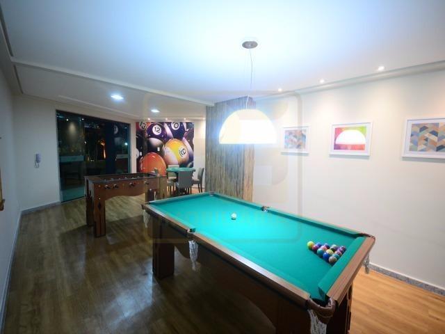 A área de lazer é completa, com piscina adulto e infantil, sauna, churrasqueira, academia equipada, playground, parquinho, salão de jogos, salão de festas e espaços de convivência.