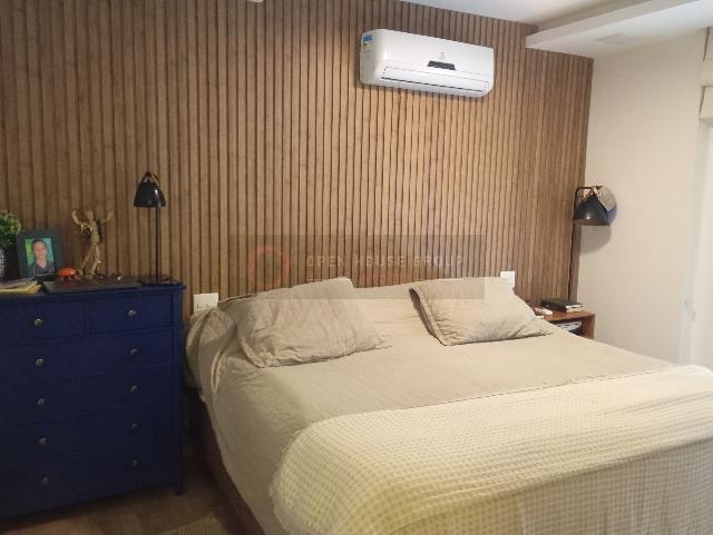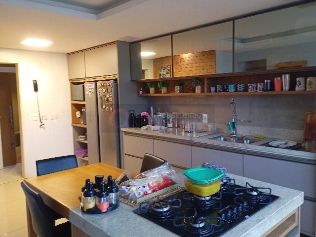 A planta dispõe de quatro quartos, sendo três suítes, incluindo uma máster com ampla varanda privativa, além de sala espaçosa em dois ambientes, varanda gourmet com cortina de vidro e vista para o mar, copa-cozinha planejada com armários sob medida, área de serviço, despensa e banheiro de apoio. O imóvel conta com climatização por ar-condicionado, iluminação indireta, sistema de som ambiente, excelente ventilação e iluminação natural. São duas vagas de garagem.