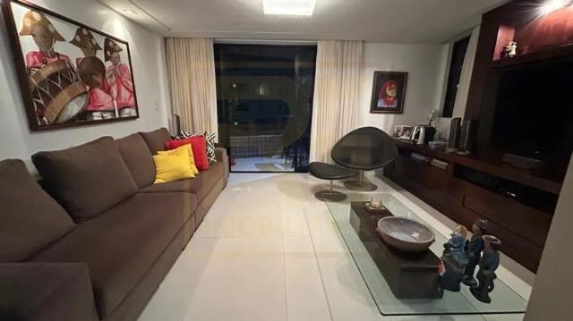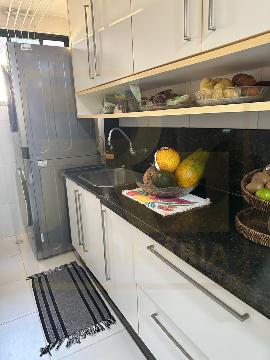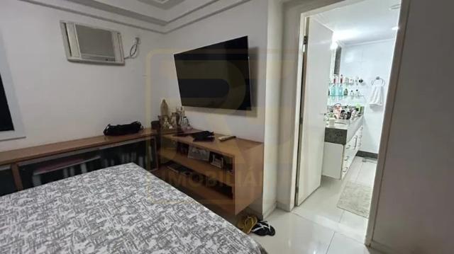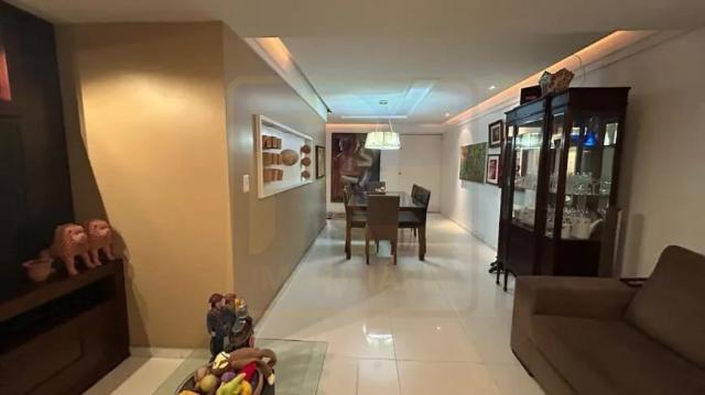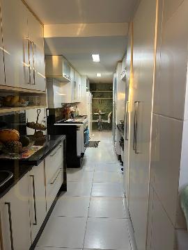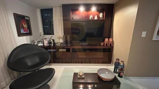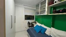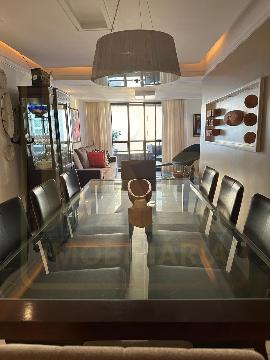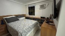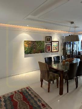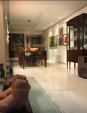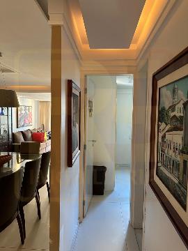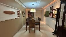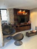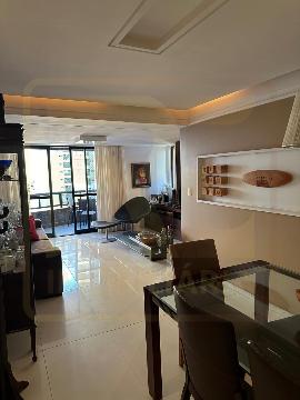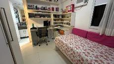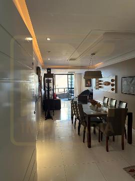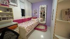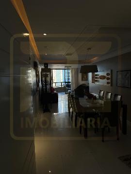 Um apartamento sofisticado, com 115 m², varanda, sala ampla para dois ambientes e três quartos, sendo duas suítes, além de área de serviço e duas vagas cobertas.
