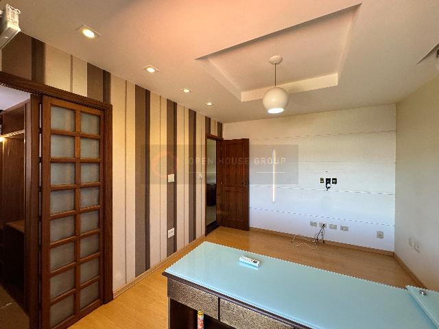 No primeiro pavimento, dispõe de escritório, lavabo, ampla sala com três ambientes, cozinha funcional e dependência completa. No segundo andar, amplo mezanino, acompanhado de banheiro social, um quarto com varanda e closet, além de mais dois quartos com varanda, sendo um deles uma suíte.