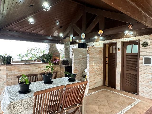 Garagem coberta para 05 carros, casa de caseiro (com sala, quarto, banheiro, cozinha e área de serviço), um grande terraço ao redor de toda a casa; Piscina com raia, 2 duchas, sauna a vapor, churrasqueira, fogão e forno à lenha, salão de jogos/festas, com lavabo e cozinha e um belo jardim!