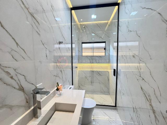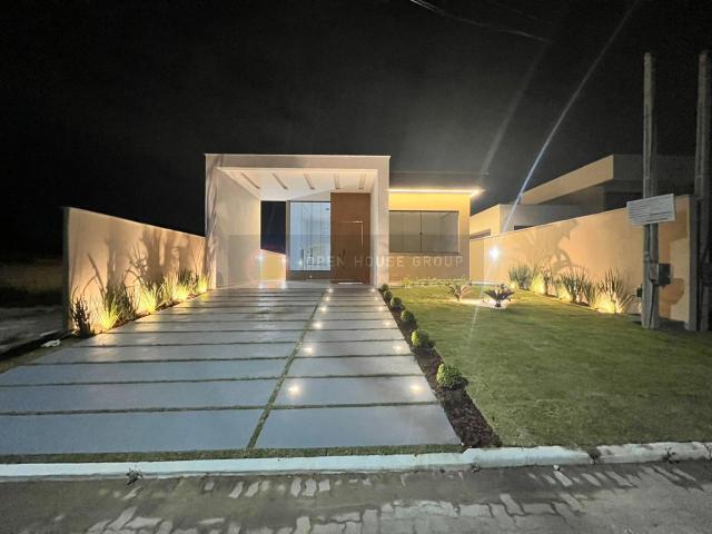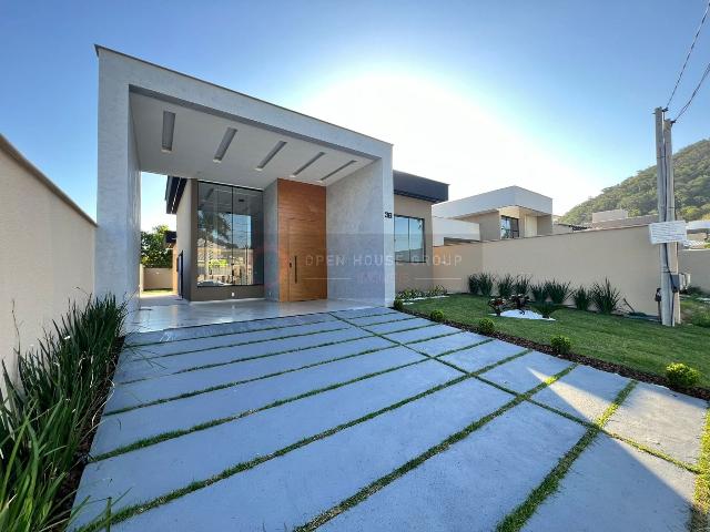 Casa linear de luxo em condomínio com localização privilegiada e linda vista para a pedra, medindo 153 m2 em terreno de 372m2, com 3 suítes, sendo uma com closet, sala com pé direito duplo dois ambientes, cozinha americana conceito aberto em mármore prime, banheiros com mármore prime e blindex até o teto, área gourmet completa, com churrasqueira, banheiro , lavanderia e chuveirão e já com a instalação de energia e água preparada para colocar a piscina do seu jeito. Paisagismo planejado, garagem coberta para 2 veículos , cabendo mais 2 descoberto. A iluminação interna e externa toda em LED e planejado para o conforto e sofisticação.