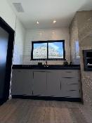Composta de 3 quartos com 2 suites, banheiro social e outro externo, sala, cozinha, área gourmet, área de serviço, quarto de ferramentas externo, vagas de garagem. Cisterna de 5 mil litros + caixa d'água de 3 mil litros, placa solar, móveis planejados.