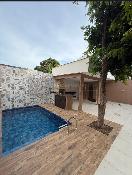 Área de lazer completa com piscina e churrasqueira