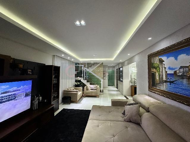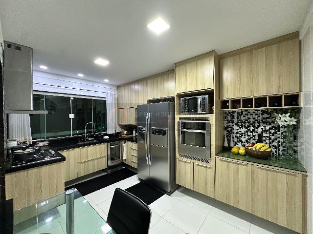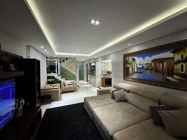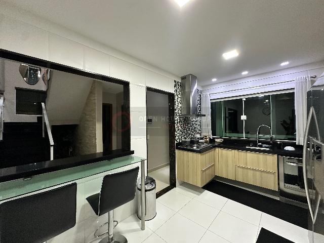 Open House Imóveis vende - Casa com 4 quartos (sendo 3 suítes no andar superior e 1 embaixo). Suíte master com banheira de hidromassagem; Salão em 2 ambientes, sala de jantar, jardim de inverno, cozinha americana e banheiro social.
