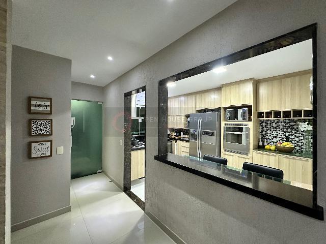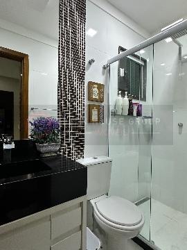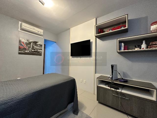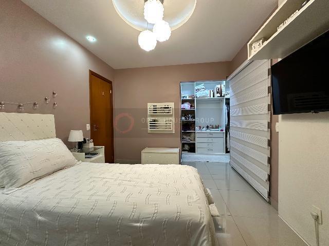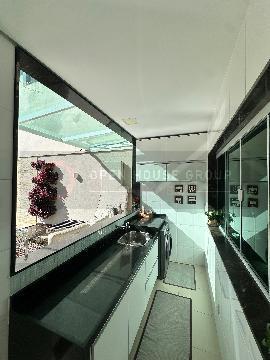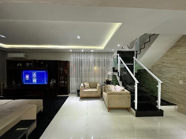 No 2º pavimento: 3 suítes, sendo 2 delas com varanda e closet, uma delas fechada em vidro; Total de 4 aparelhos de ar-condicionado (nas 3 suítes e na sala);