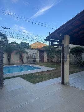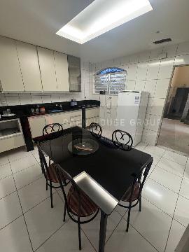 Área externa: amplo quintal gramado, piscina, canil, cozinha com área gourmet, garagem para quatro carros, sendo três cobertas e uma descoberta, dependencia de empregada completa, lavanderia e sauna.