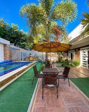 Tem Lago, 2 bangalôs, 4 cozinhas, 5 quartos, 4 suites com closet, piscina Com cascata, jacuzzi, campo de futebol, vestiário, 3 churrasqueiras, 28 árvores frutíferas, poço de alta vazão, torre de água própria, boiler, salão com som embutido e mesa controladora, iluminação para festas, estacionamento para 20 carros
