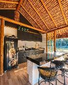 Cozinha americana com ilha integrada com área gourmet