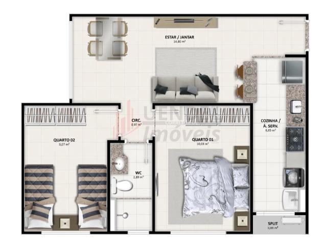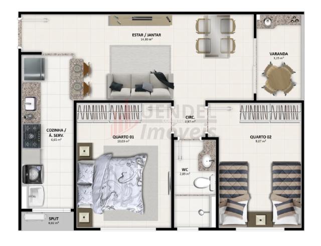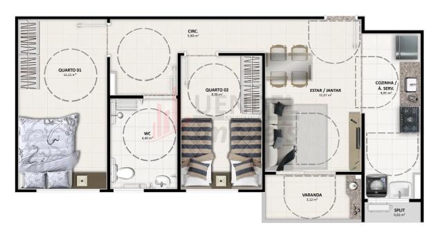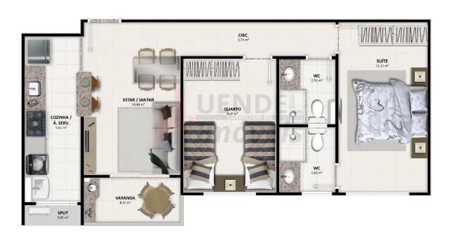 Apartamento com 49,90m², 56,52m² até 53,47m² de área privativa