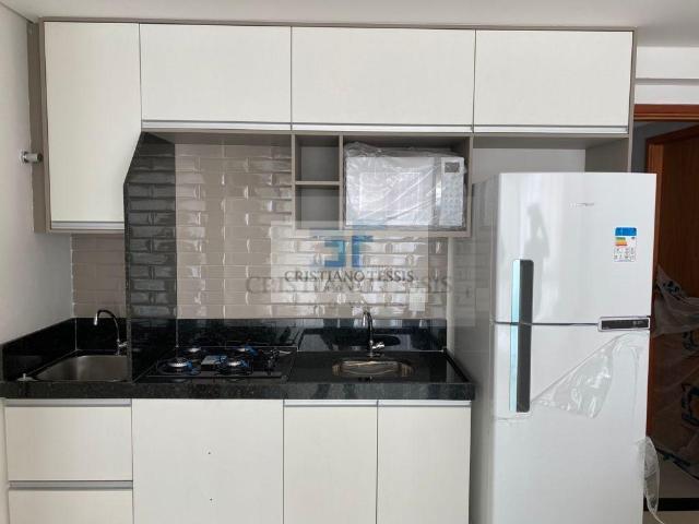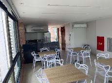 Apartamento com 1 quarto, sala, cozinha/serviço, WC social. Área de lazer com piscina com deck, salão de festas climatizado com espaço gourmet com vista panorâmica e lavanderia.