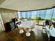 Uma sala ampla que oferece não apenas conforto, mas também uma vista deslumbrante para o mar, criando um ambiente acolhedor e relaxante.