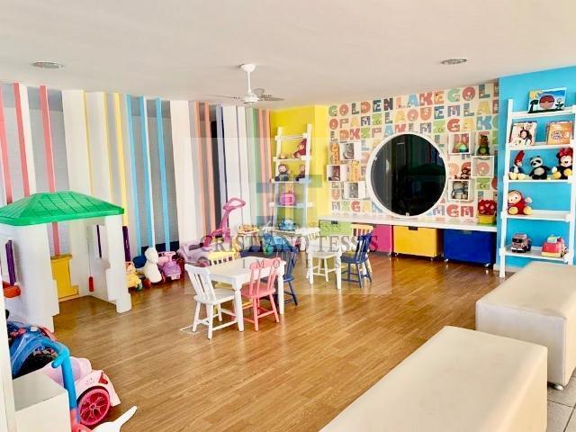 A área de lazer é excelente e oferece opções para todas as idades, incluindo brinquedoteca, sala de jogos, parquinho infantil, piscina, dois salões de festas e churrasqueira.