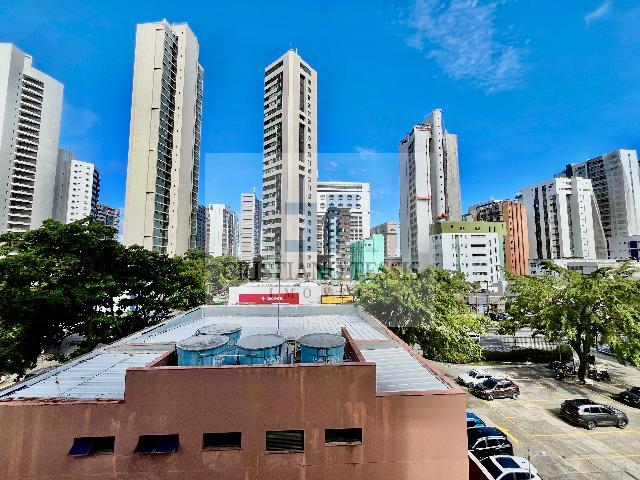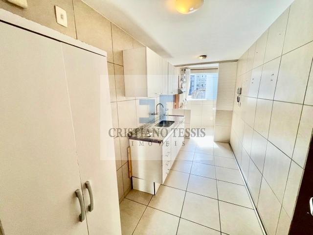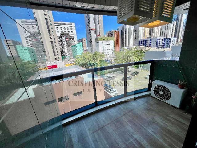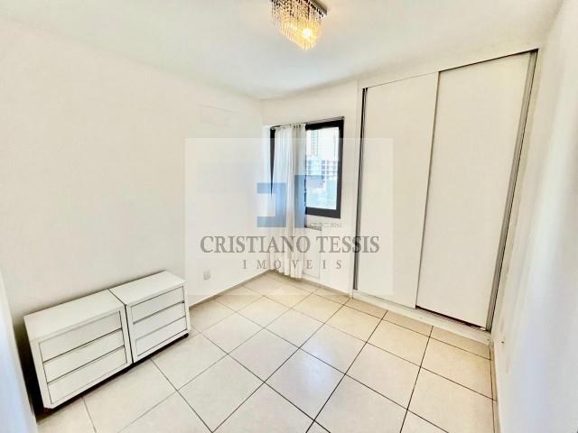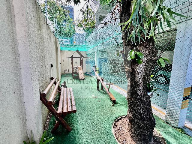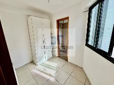 O imóvel conta com 3 quartos, sendo 1 suíte, todos com armários planejados, além de sala ampla em L para dois ambientes, integrada à varanda e equipada com ar-condicionado. Dispõe ainda de banheiro social, copa/cozinha funcional com armários, boiler, área de serviço e dependência completa de empregada.