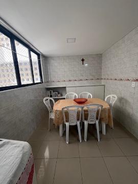 Ed. *ATENAS*, na primeira quadra de Jatiuca, com 103m², varanda voltada para av. Jatiuca, com belíssima vista para o mar, sala ampla em L, WC social, três quartos, sendo um suite, cozinha, área de serviço, e DCE. Uma vaga de garagem no subsolo, dois elevadores, gerador, salão de festas e condominio de R$770,00
